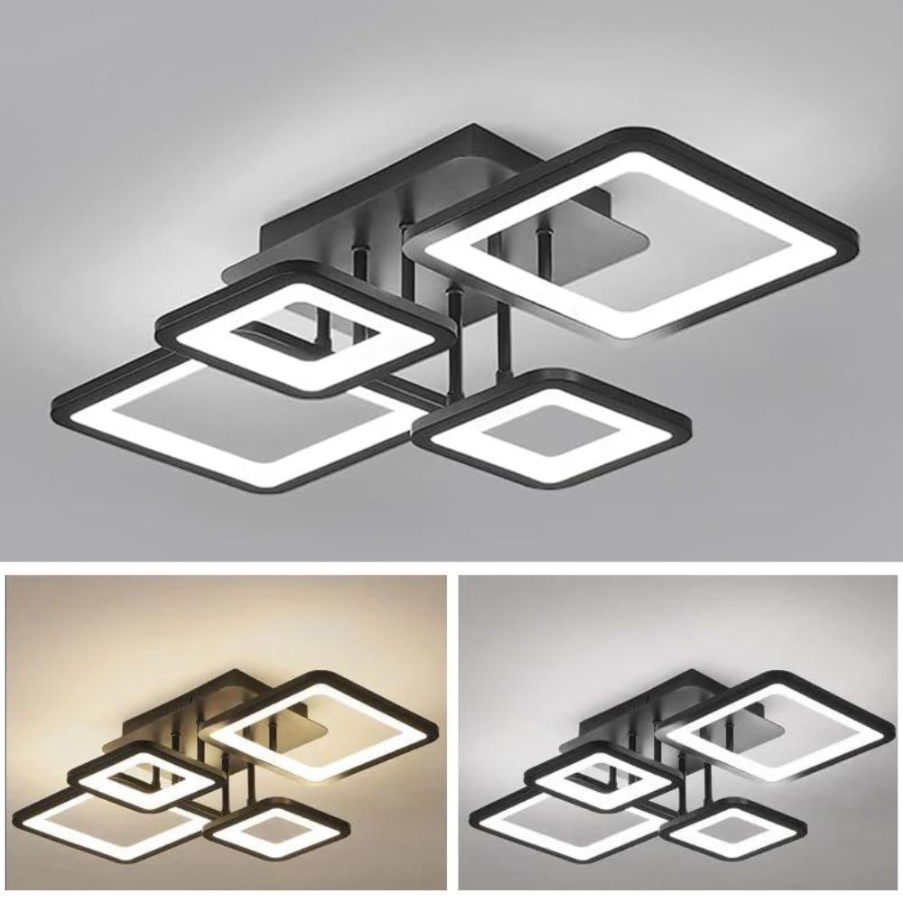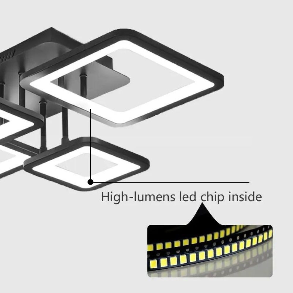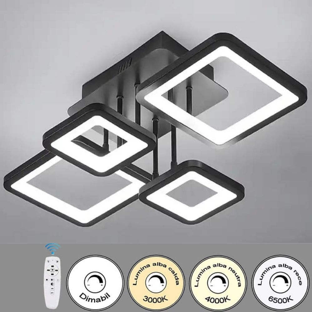 Lustra Led Pro Square, 4 brate, telecomanda, Intensitate Reglabila, neagra - Lustre LED > Lustre bucatarie