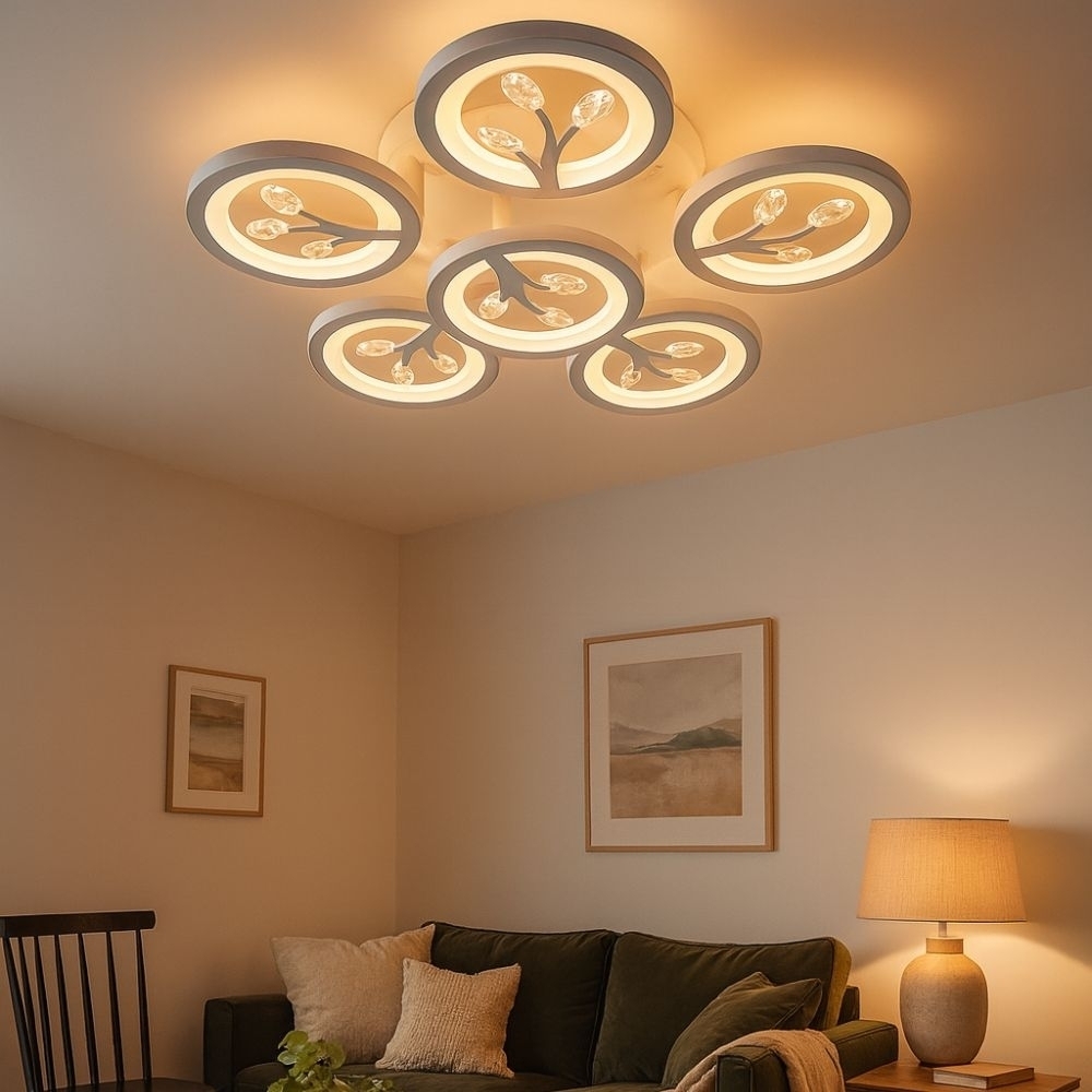 Lustra LED cu 6 LED-uri cu telecomanda, 3 tipuri de lumina, intensitate reglabila.