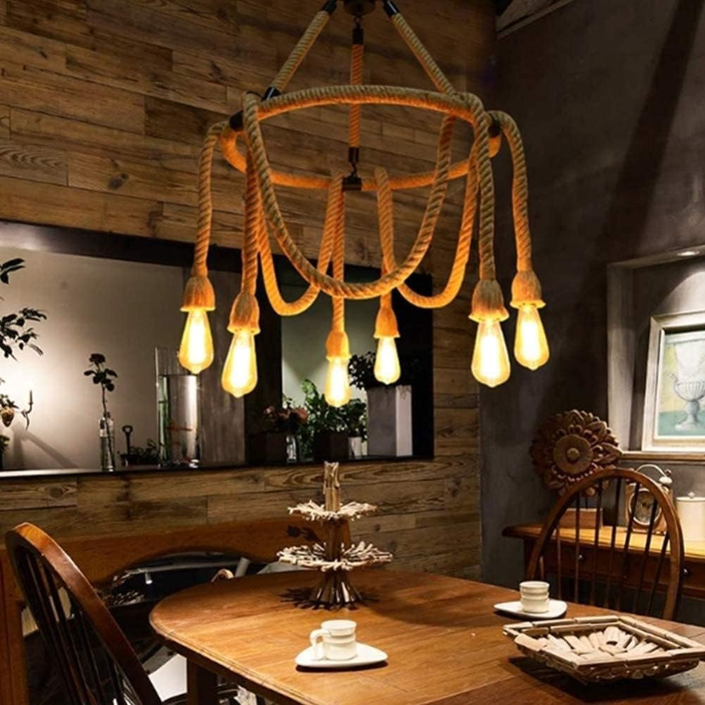 Lustra Rustic Lighting, circulara, suspendata, cu 6 becuri, E27, max 6x 40W - Lustre LED > Lustre Rustic