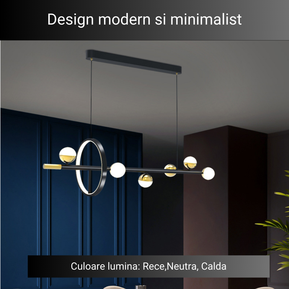 Lustra LED Nordic Globe Lights, cu telecomanda, 40W, negru, cu trei tipuri de lumina - Lustre LED > Lustre LED suspendate