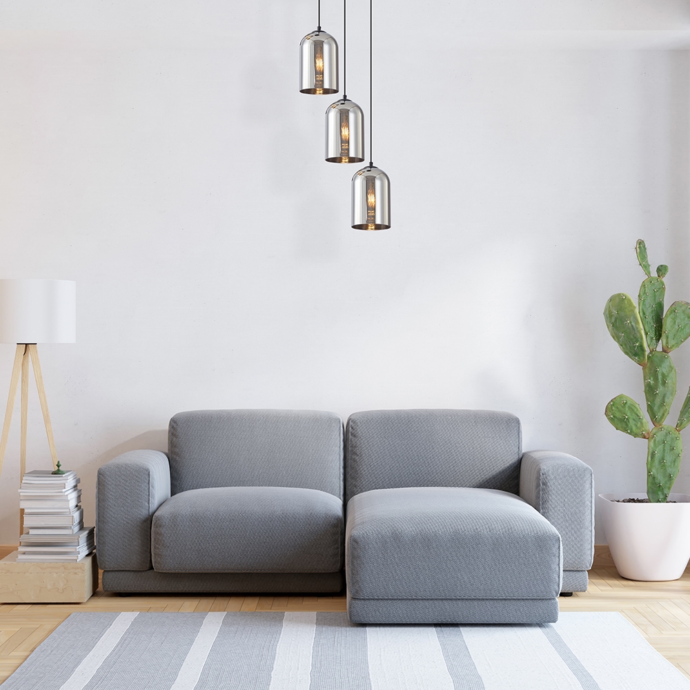 Lustra suspendata S004R-3H-3xE27, glob Fume, E27 max 3x23W - Lustre LED > Lustre living